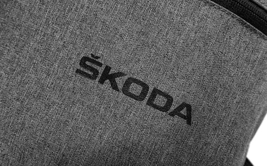 Originální batoh značky Halfar s černým potiskem ŠKODA. S klopou na zip a úložným prostorem na notebook, 2 přední malé kapsičky. Polstrovaná záda a popruhy.