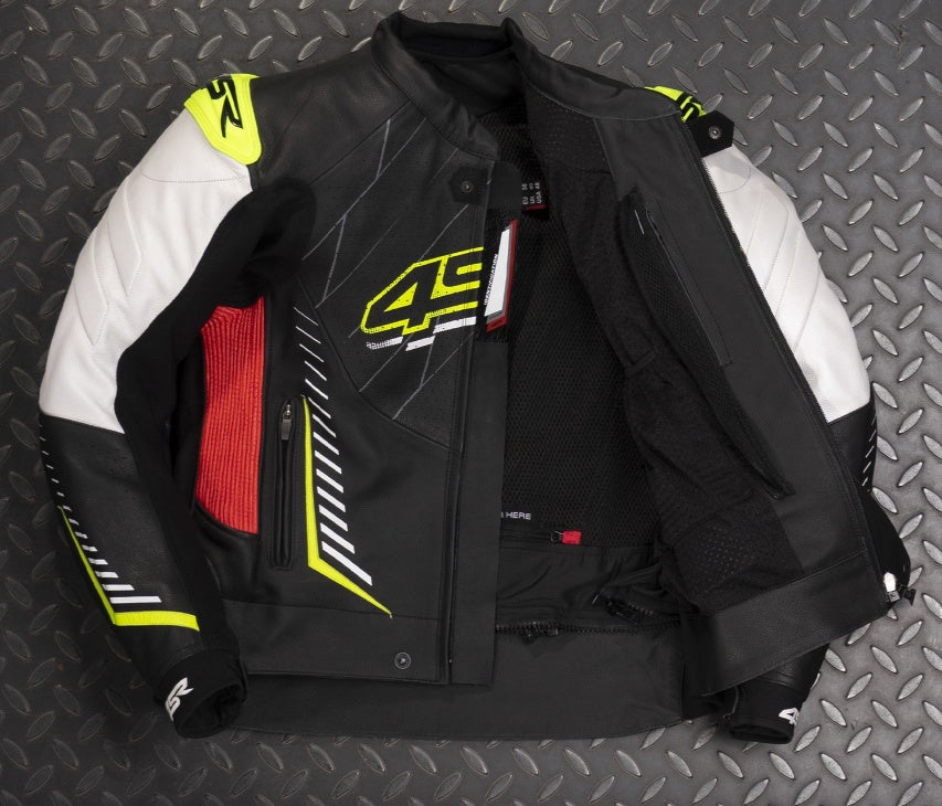 - aramidová streč na rukávech a flexibilní kožené panely pro lepší pohyblivost na motocyklu