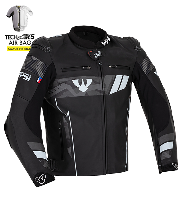 - pružné kožené části: rukávy, záda, boky pro maximální pohyb a vytvoření dostatečného prostoru při nafouknutí airbagu