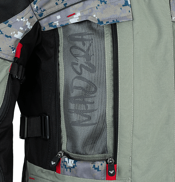 Díky samostatným vrstvám – voděodolné vložce a softshellové bundě – si snadno nakonfigurujete dle aktuální potřeby. Konstrukční řešení pro jízdu s airbagem TECH-AIR®5 i bez něj. V horkých dnech oceníte důmyslně řešený ventilační systém. Regulovatelné větrací panely a zipové kapsy po celé bundě odvádí přebytečné teplo z bundy ven. Pozici chráničů na exponovaných místech můžete upravit pomocí vnitřních suchých zipů. Stahovacími pásky regulujete velikost, jak v danou chvíli potřebujete s ohledem na vepnuté vnitřní vrstvy či airbagový systém. Vždy se cítíte komfortně. Jeden komplet na celý rok, to je cestovatelský komplet MADERA.