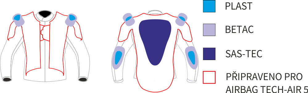 - ramena: Betac®, chrániče 3D z viskózně elastické pěny, EN-1621-1:2012, T+ T-, level 2, vyjímatelné s možností nastavení suchými zipy + vnější zesílení plastovou skořepinou