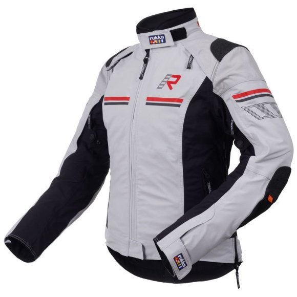 - Rukka – finská prémiová světová značka motocyklového oblečení a vybavení. Nabízí výborné, dobře padnoucí a neomezující střihy, používá nejkvalitnější materiály, bezpečné patentované chrániče D3O. Nepromokavé membrány Gore-Tex jsou zárukou vaší spokojenosti.