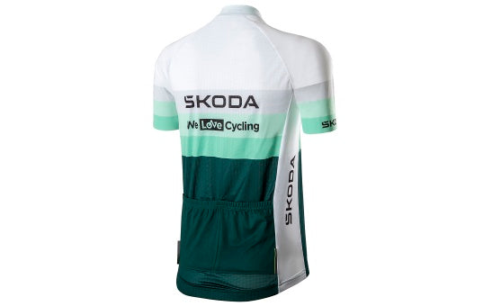 Dámský cyklistický dres v novém designu Škoda v kombinaci barev bílé, emerald a electric je vyrobený z recyklovaných materiálů, dres je prodyšný, elastický a příjemný na těle. Má lichotivý střih a je vybaven dvěma elastickými kapsami vzadu s reflexními prvky. Elastické rukávy se přizpůsobí paži. Dostupný v dámských velikostech XS až XXL.