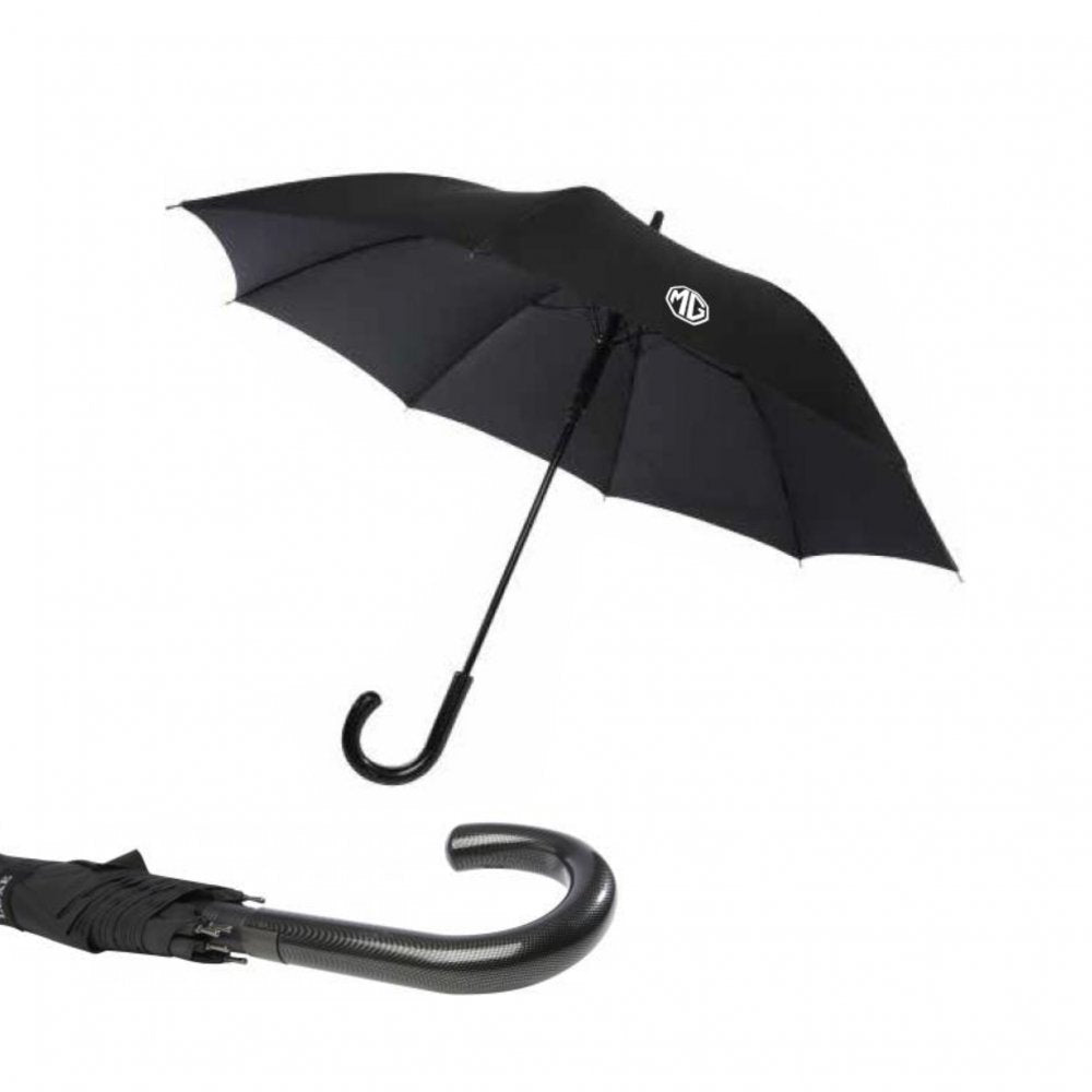 Deštník s automatickým otevíráním, kupolí z polyesterového hedvábí a robustní černou kovovou tyčí. Vysoce kvalitní celo laminátový rám zajišťuje maximální flexibilitu ve větrných podmínkách. Zahnutá rukojeť se vzhledovou úpravou karbonu.