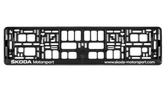 Držák registrační značky - Škoda Motorsport z nabídky Originálního příslušenství potěší každého příznivce značky Škoda. Stylový nápis Škoda Motorsport podtrhne dynamický a sportovní ráz vašeho vozu.