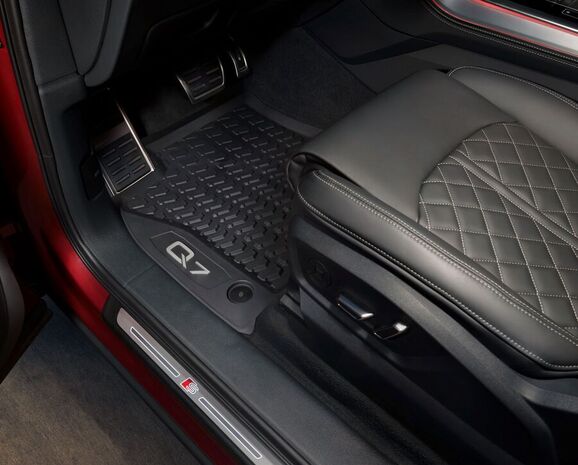 Koberce do každého počasí s nápisem modelu Q7 - Přesně lícující rohože mají protiskluzovou spodní stranu a díky upevnění v příslušných bodech jsou koberce optimálně spojeny s podlahou vozidla - Recyklovatelné - Sada obsahuje 2 kusy - Koberce jsou kompatibilní s těmito modely: Q7 od modelového roku 2016 Q7 e-tron od modelového roku 2016 Q7 TFSI e od modelového roku 2020