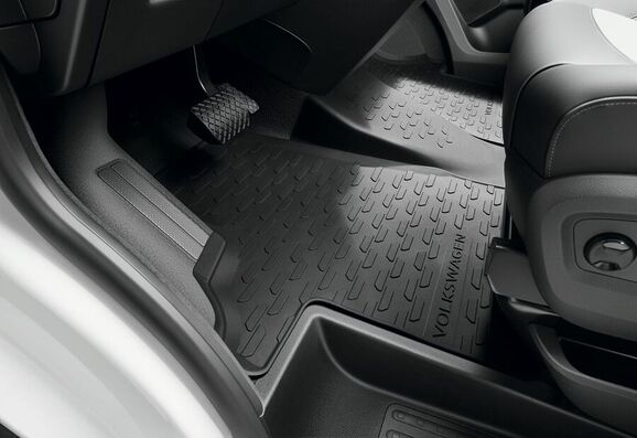 Díky originálním rohožím Volkswagen do každého počasí již vlhkost a nečistoty vašemu autu neublíží. Přesně lícující rohože mají protiskluzovou spodní stranu a jsou snadno omyvatelné. Speciálním optickým detailem je integrovaný nápis názvu modelu. Kromě toho jsou rohože 100% recyklovatelné, velmi pevné a odolné. Jedna sada se skládá ze tří rohoží pro přední prostor nohou, t.j. rohož pro nožní prostor řidiče, spolujezdce a středová rohož.