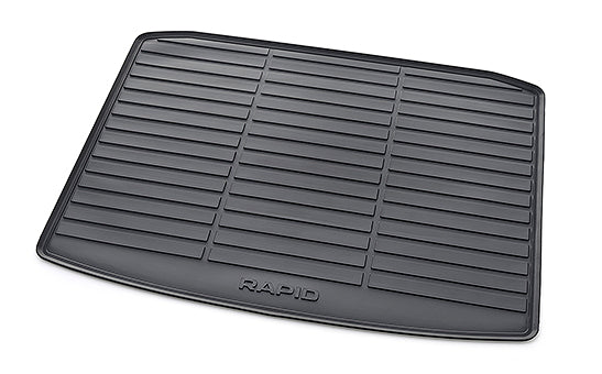 Gumový koberec do zavazadlového prostoru je velmi praktický pomocník. Můžete na něj pokládat zašpiněné předměty jako boty, sportovní náčiní, zahradnický materiál, dřevo a podobně, aniž byste museli mít obavy, že si zašpiníte podlahu. Tvar koberce kopíruje tvar zavazadelníku a přispívá k omezení nechtěného pohybu zavazadel. Koberec lze snadno a rychle omýt vodou. Koberec nekoliduje se síťovým programem a je na něm vylisován nápis Rapid.