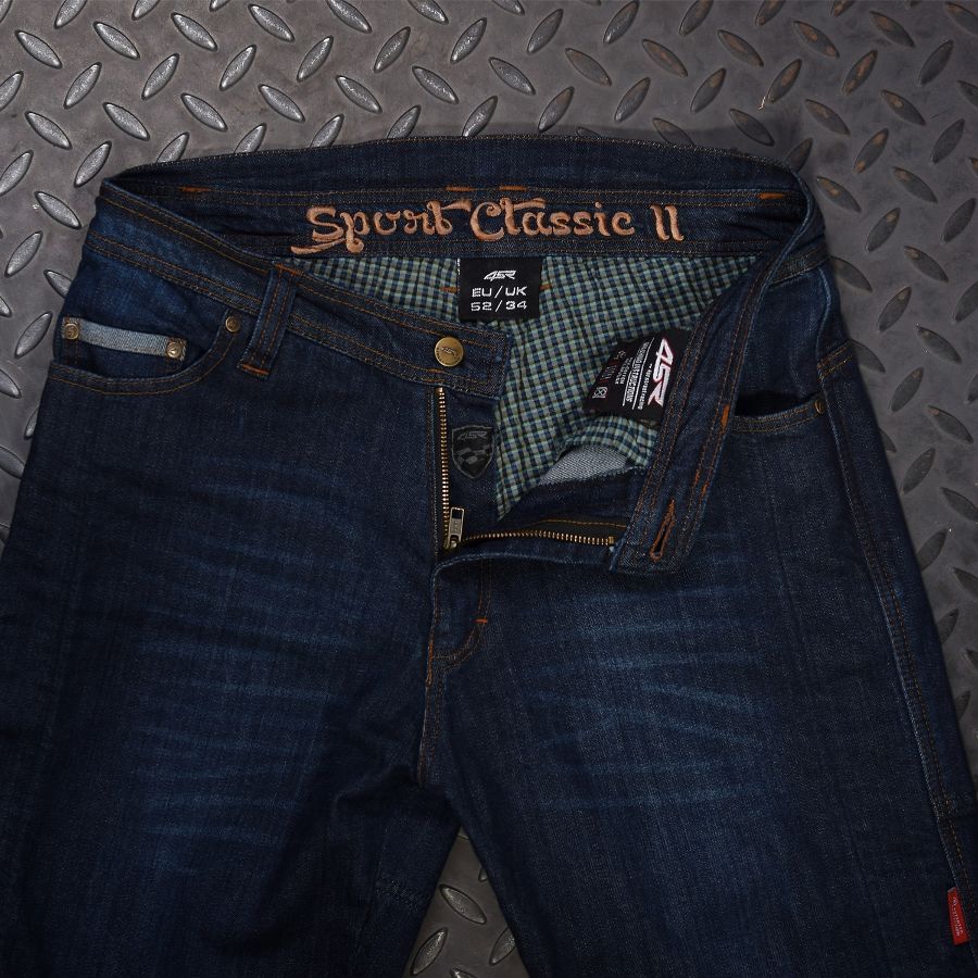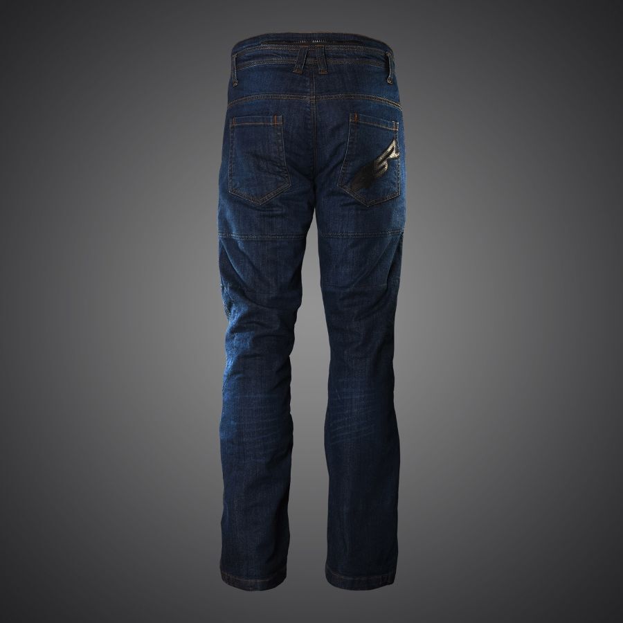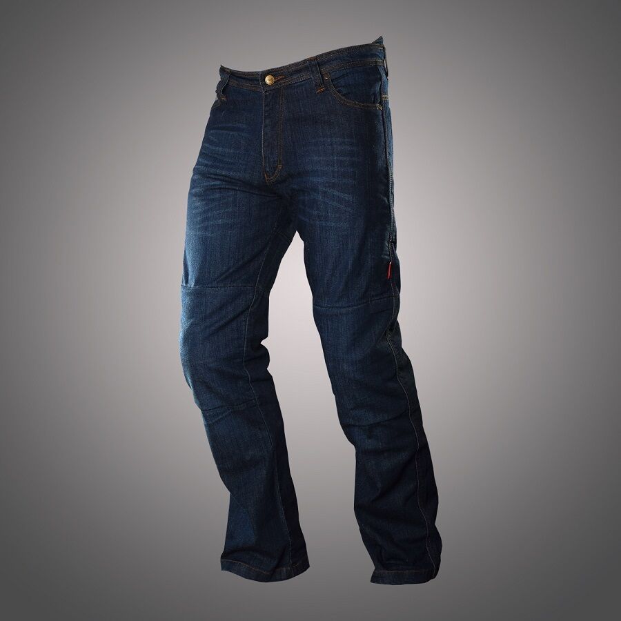 motocyklové kalhoty vyrobené ze 14 uncového denimu, vyztužené v oblasti kolen a sedací části vláknem DuPont™ Kevlar®. Nechybí jim špičkové kolenní chrániče Safe Tech, které jsou umístěné v patentovaných kapsách, s možností změny polohy.