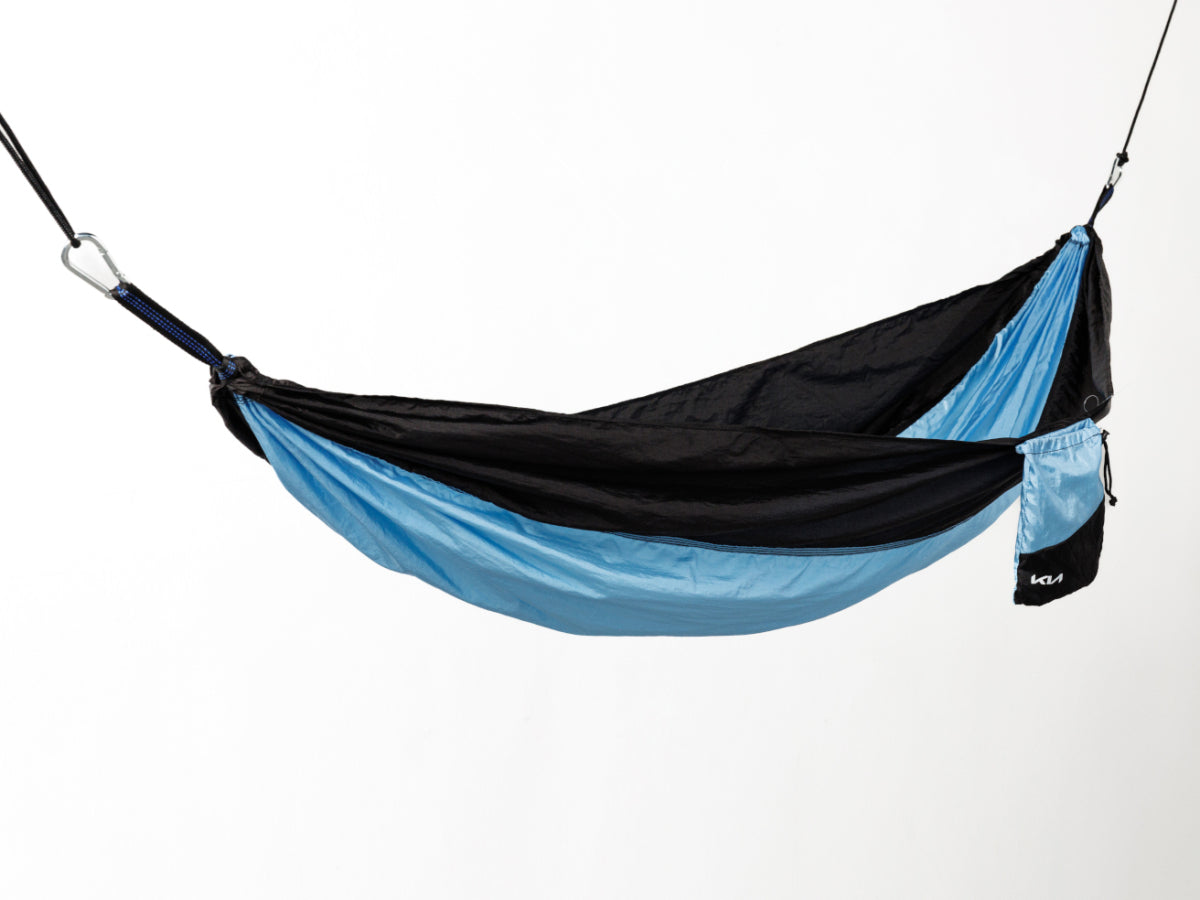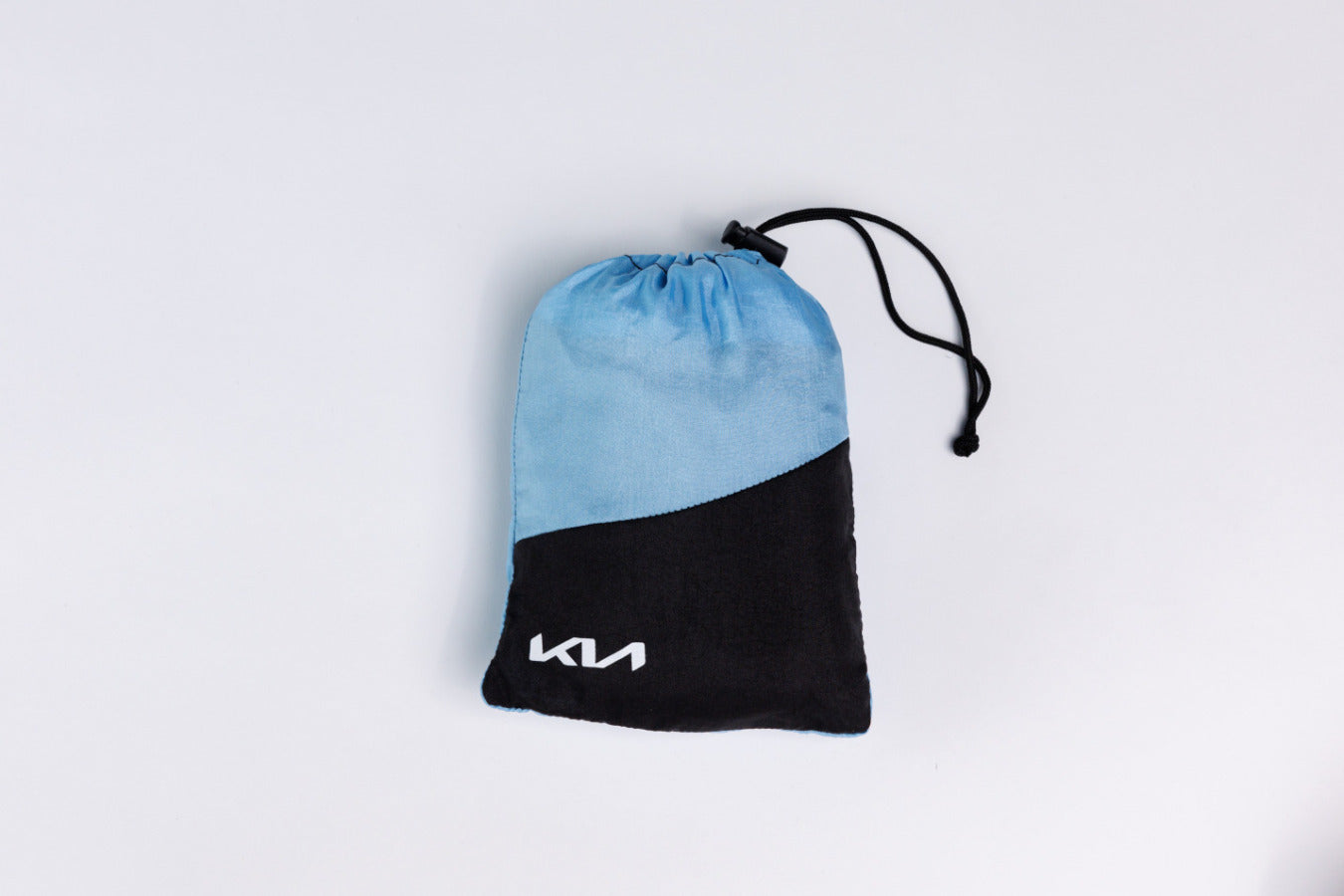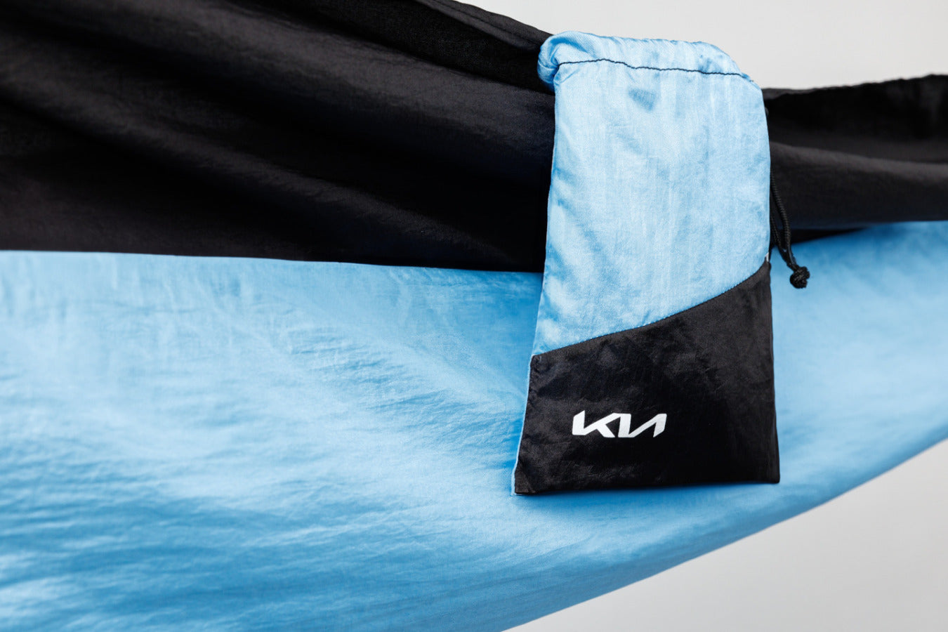 Objevte naši ultralehkou houpací síť s logem Kia na integrovaném přepravním pouzdře.