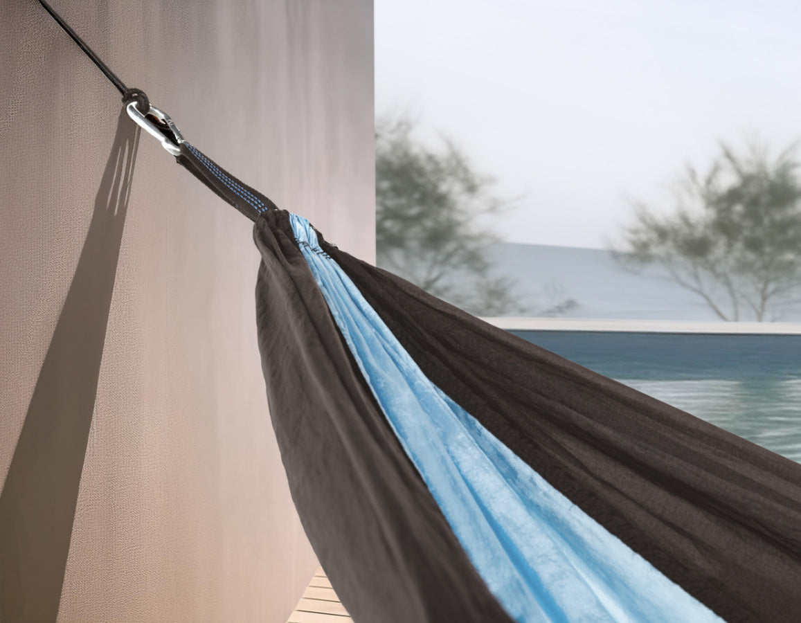 - Vlastnosti: Integrované pouzdro pro uložení houpací sítě, které usnadňuje její složení a skladování