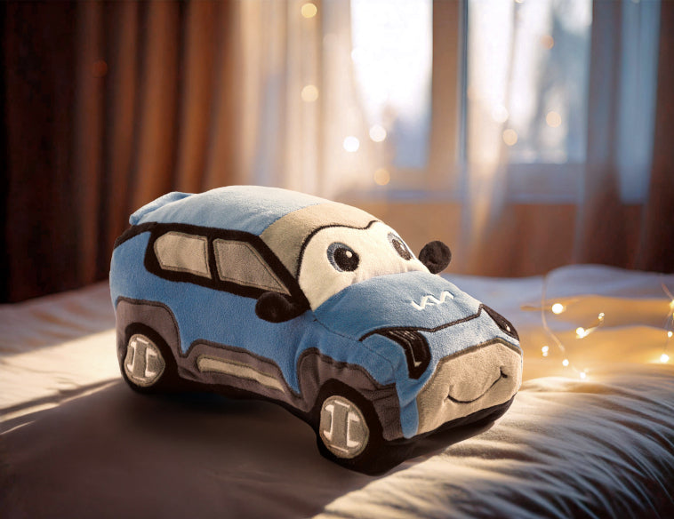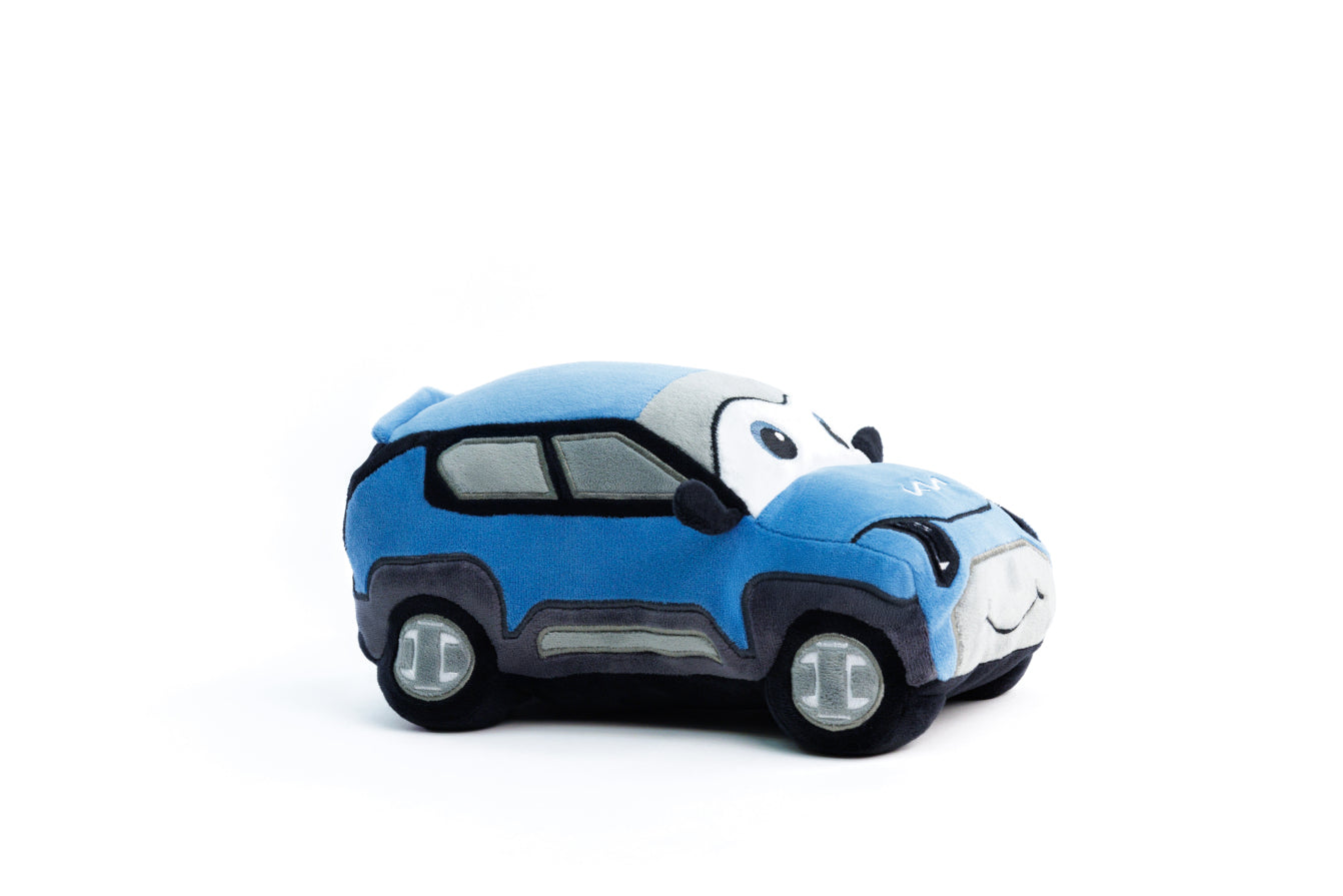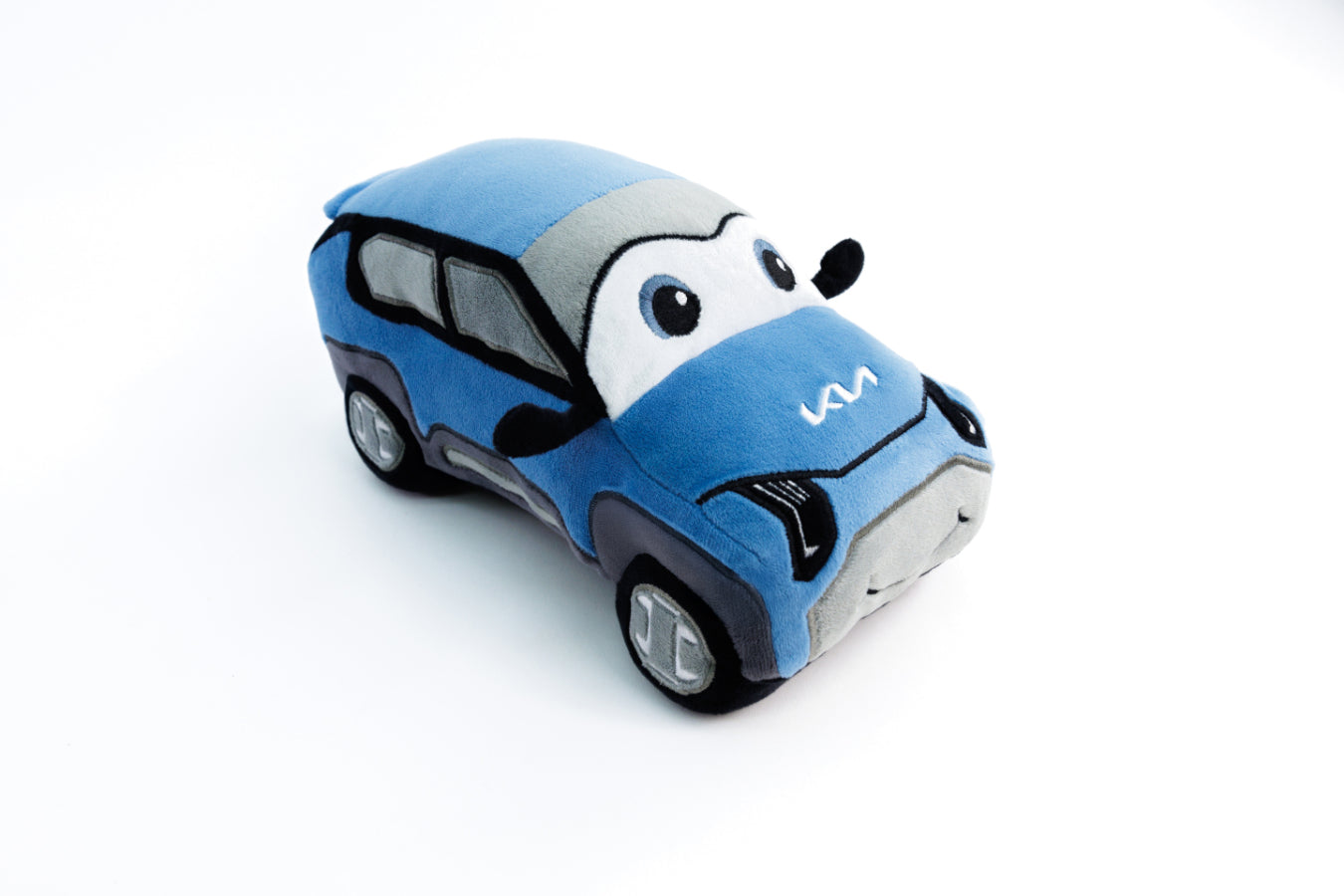 EV3 na mazlení. Toto světle modré plyšové autíčko, vyrobené ze 100% recyklovaných materiálů, je radost držet a mačkat. S délkou 30 cm a krásným vyšívaným logem Kia na přední i zadní straně má ideální velikost a je pastvou pro oči. Darujte ho každému malému fanouškovi Kia.