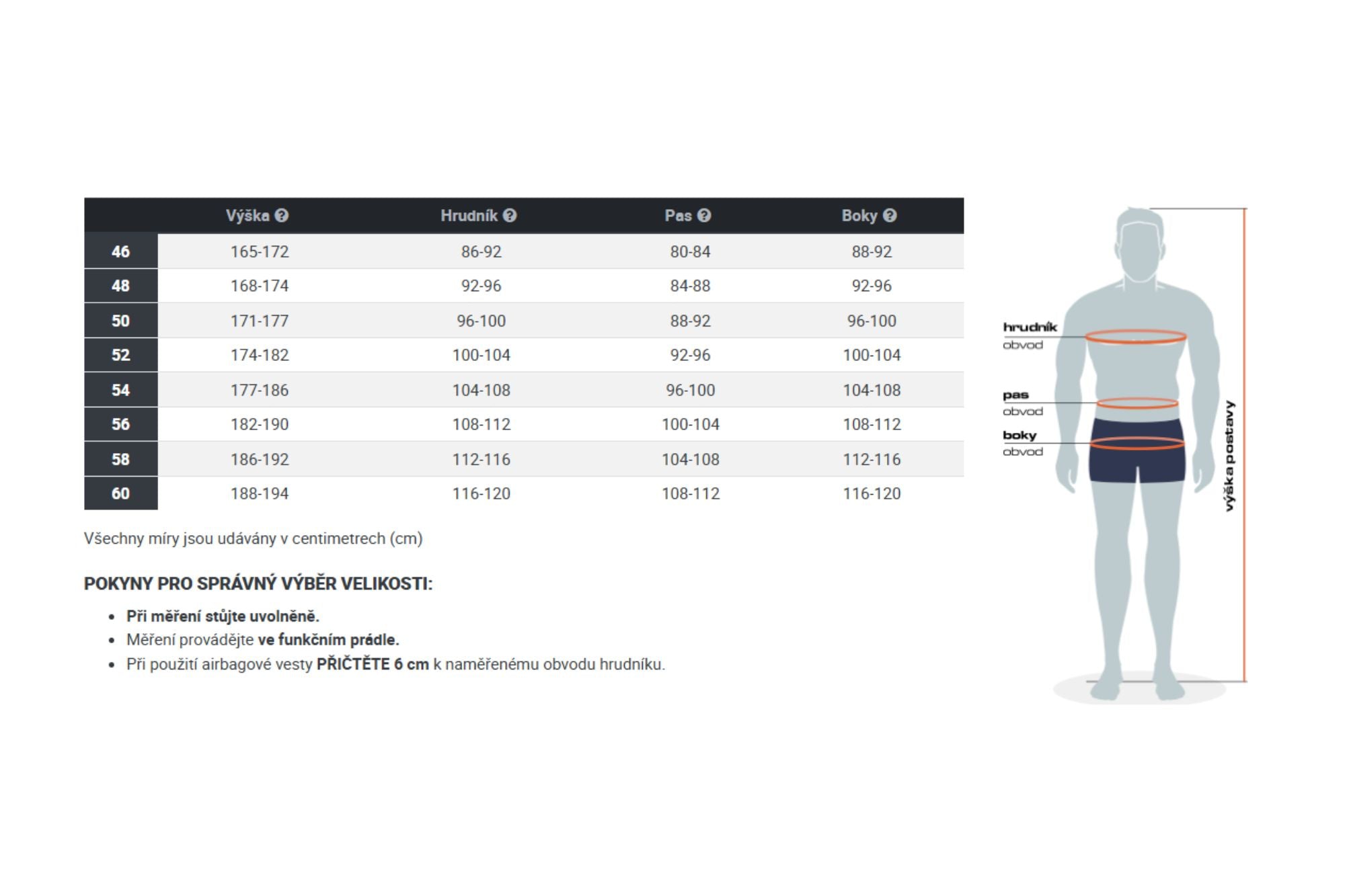 - včetně hrudního a páteřového chrániče (v případě použití airbagového systému je nutné oba tyto chrániče vyjmout!)