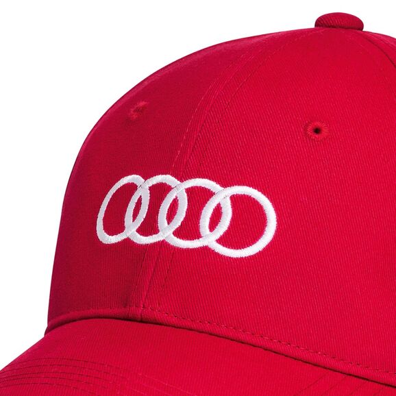 Baseballová čepice Audi vhodná pro dámy i pány - Kšiltovka je vyrobena ze šesti dílů s předním vyztuženým dílem - Díly jsou vyrobeny z příjemného lehce zdrsněného vlněného materiálu twill - Na předním dílu je zhruba 7 cm velké kontrastní vyšívané kruhové logo Audi - V zadní části je kovová spona s decentním kruhovým logem Audi - Zevnitř je po obvodu kšiltovky barevně sladěné lemování dekorované kruhovým logem Audi - Produkt značky bluesign®®