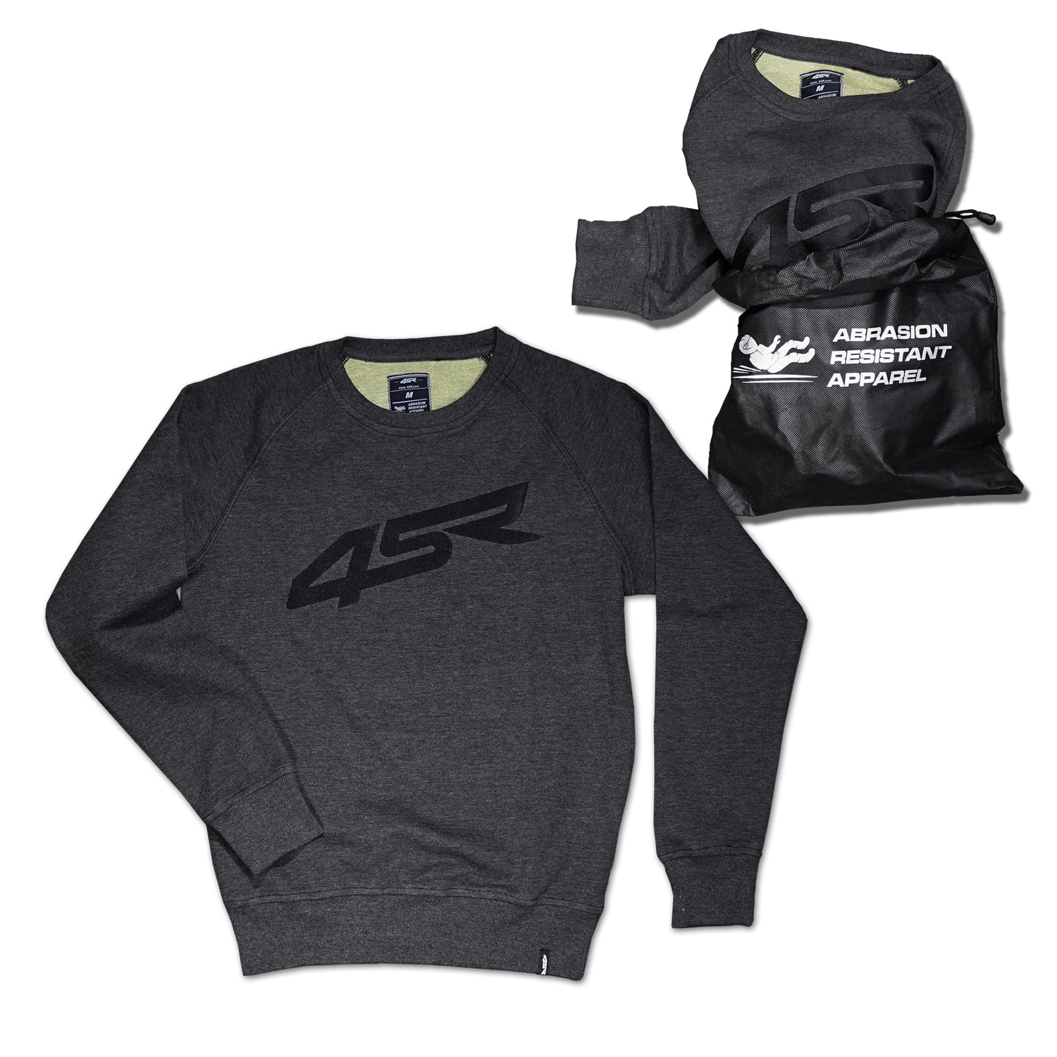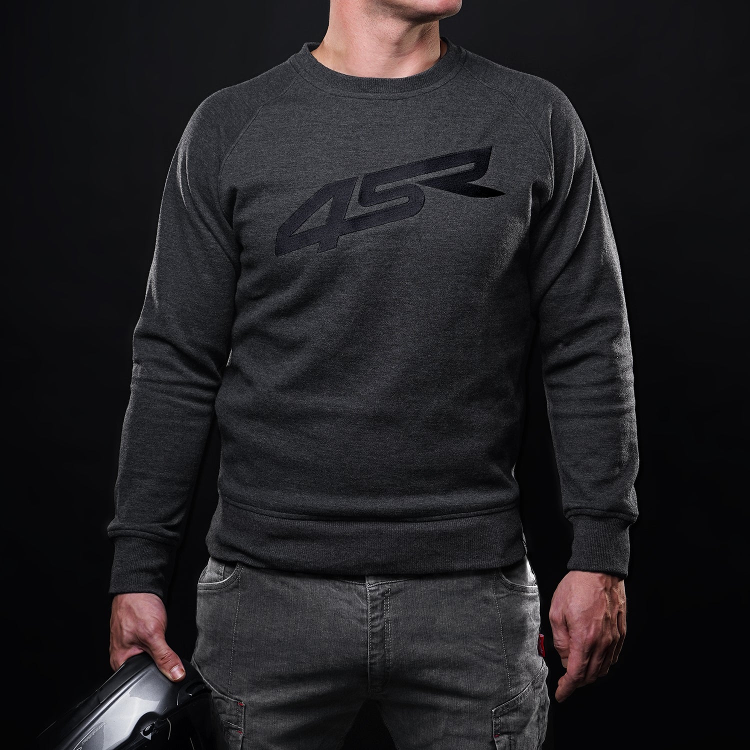 Šedá, kevlarová moto mikina bez kapuce s 2D výšivkou 4SR je kompletně celá vyrobena z unikátní kevlarové tkaniny.