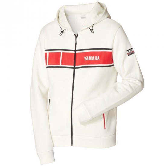 Sportovní mikina z výroční kolekce Yamaha 2021. Mikina s kapucí chrání před větrem a mírnými povětrnostními vlivy.
