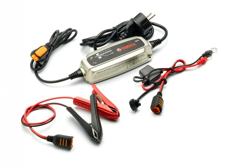 Šestistupňová nabíječka, kterou lze nabít baterii vašeho motocyklu, skútru, čtyřkolky, sněžného skútru a/nebo lodních produktů značky Yamaha.