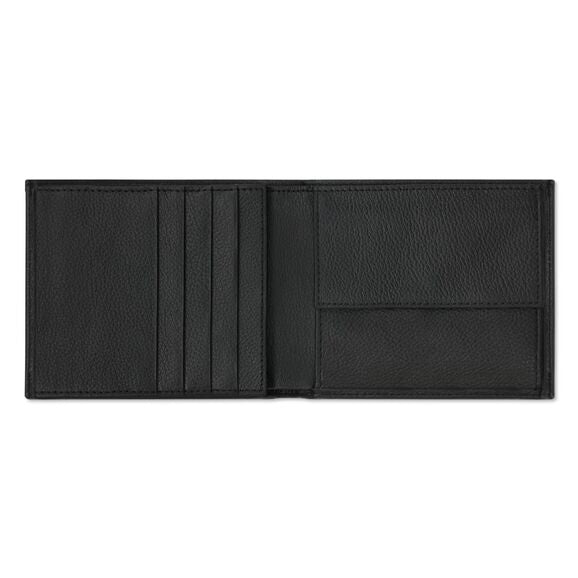 Kožená peněženka z italské hovězí kůže se zrnitou texturou představuje velmi elegantní doplněk - Dvě velké přihrádky na bankovky, 9 přihrádek na karty, jedna větší kapsa a síťovaná kapsa - Velká přihrádka na mince se zapínáním na druk - Vyražené logo Audi na přední straně peněženky - RFID ochrana - Rozměry: cca 12 x 10 x 2 cm (zavřená) - Vnitřní podšívka se vzorem loga Audi - Ruční výroba v Evropě - Barva: černá - Materiál: hovězí kůže, viskóza (vnitřní podšívka)