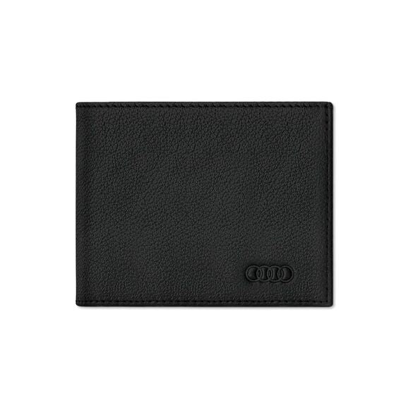 Jedna přihrádka na bankovky, 6 přihrádek na karty a dvě otevřené kapsy - Vyražené logo Audi v přední části - RFID ochrana - Rozměry: cca 10,5 x 8,5 x 1,5 cm (zavřená) - Ruční výroba v Evropě - Barva: černá - Materiál: hovězí kůže a viskóza (podšívk