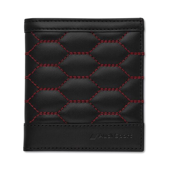 Kompaktní peněženka s voštinovým červeným prošíváním - Velká přihrádka na bankovky, přihrádky na karty - Vyražené logo Audi Sport na přední straně - Ochrana RFID - Vnitřní podšívka s logem Audi Sport - Rozměry: cca 9 x 10 x 1,5 cm (zavřené) - Ruční výroba v Evropě Materiál: - Hovězí kůže - Vnitřní podšívka: viskóza Barva: černá