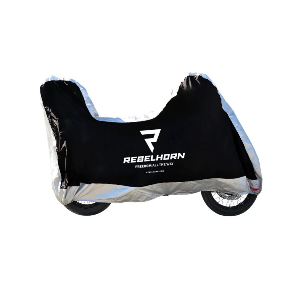 Plachta na motorku REBELHORN COVER II černo/stříbrná s prostorem na kufr