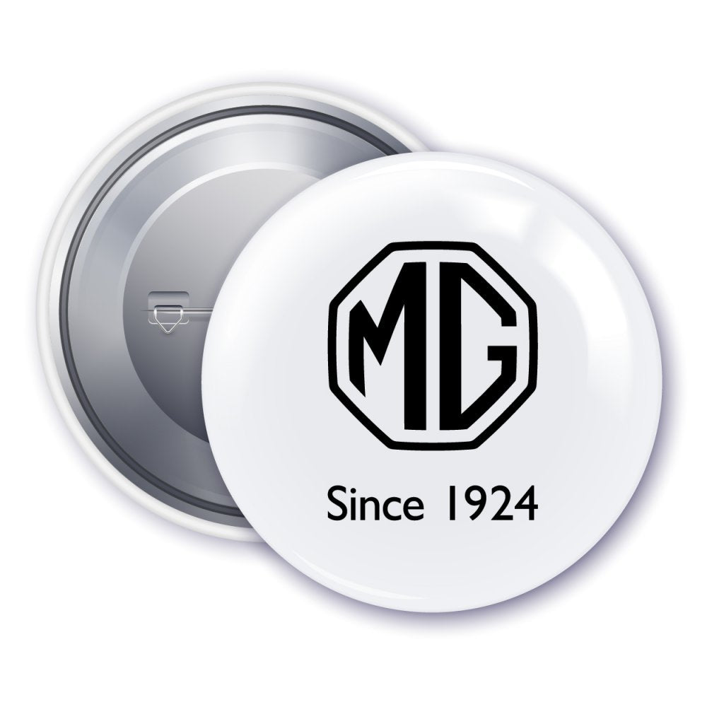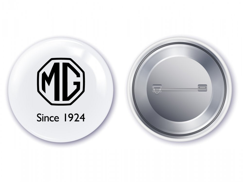 Kulatá placka s připínáčkem o průměru 32 mm v designu MG Since 1924.