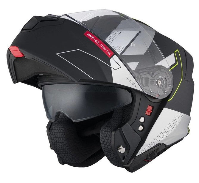 Vyklápěcí motocyklová přilba s protisluneční clonou špičkové kvality od MT Helmets.
