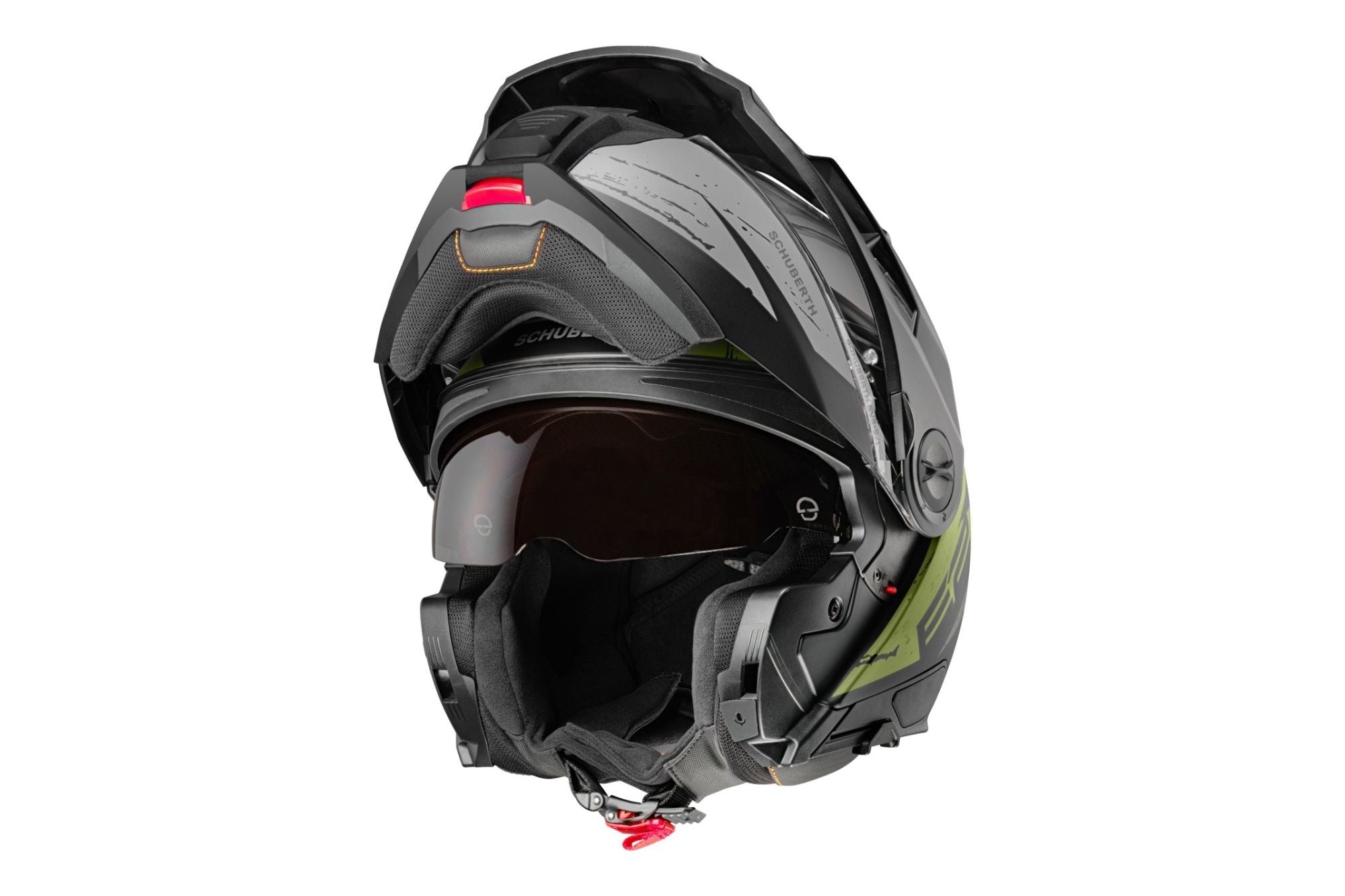 Přilba Schuberth E2 je perfektní kombinace pohodlí vyklápěcí přilby s vlastnostmi a vzhledem enduro helem. Tato přilba je tedy ideální na enduro cestování. Vychází z oblíbeného modelu C5.