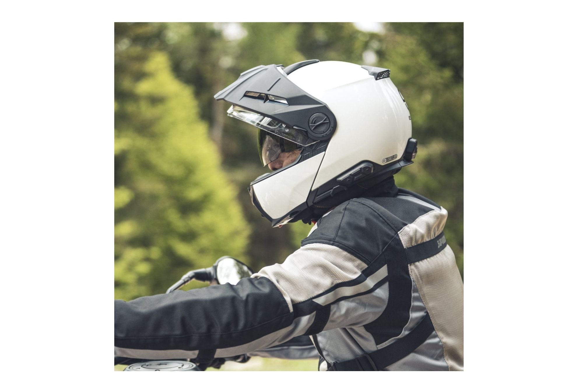- Příprava na komunikaci SCHUBERTH SC2 od firmy SENA – instalace je extrémně jednoduchá, nastavení i používání komunikace je velmi snadné. HD reproduktory SENA, tři antény pro FM rádio, Bluetooth a Mesh interkom jsou již součástí přilby. Při instalaci komunikace stačí pouze zapojit mikrofon, sundat krytku vzadu na helmě, zacvaknout hlavní jednotku a zapnout. SC2 nabízí možnost používat digitální asistenty, regulovat okolní hluk. Má skvělý dosah.