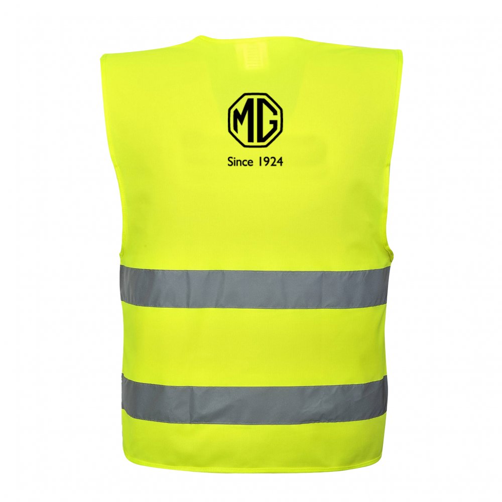 Dobře viditelná reflexní vesta s logem MG.