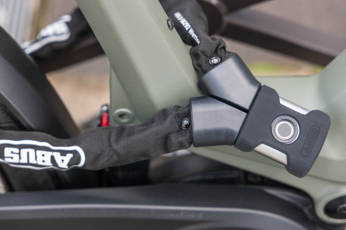 Inovativní technologie s kapacitním senzorem na řetězovém zámku zajišťuje, že můžete zámek svého kola otevřít bez jakýchkoli klíčů nebo číselníků – pouze pomocí otisku prstu.