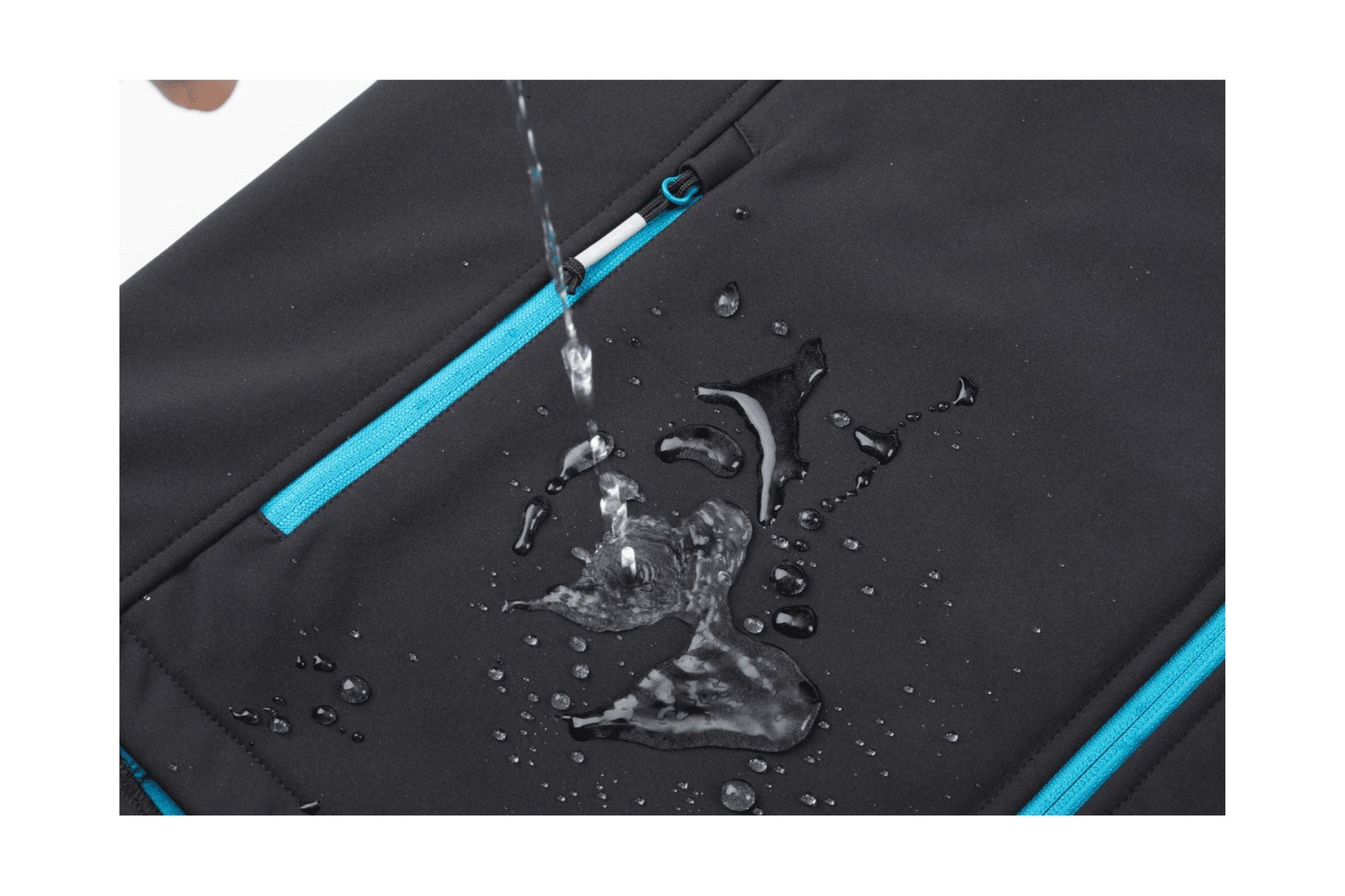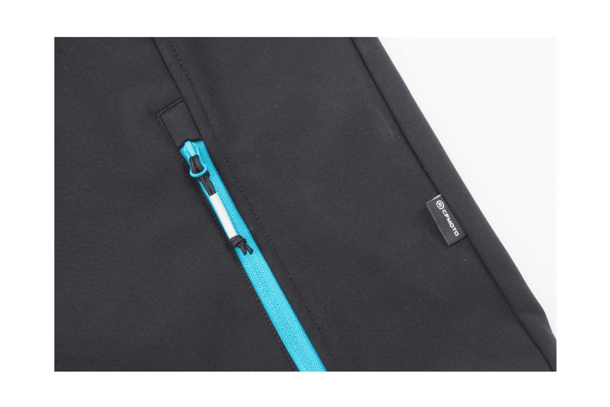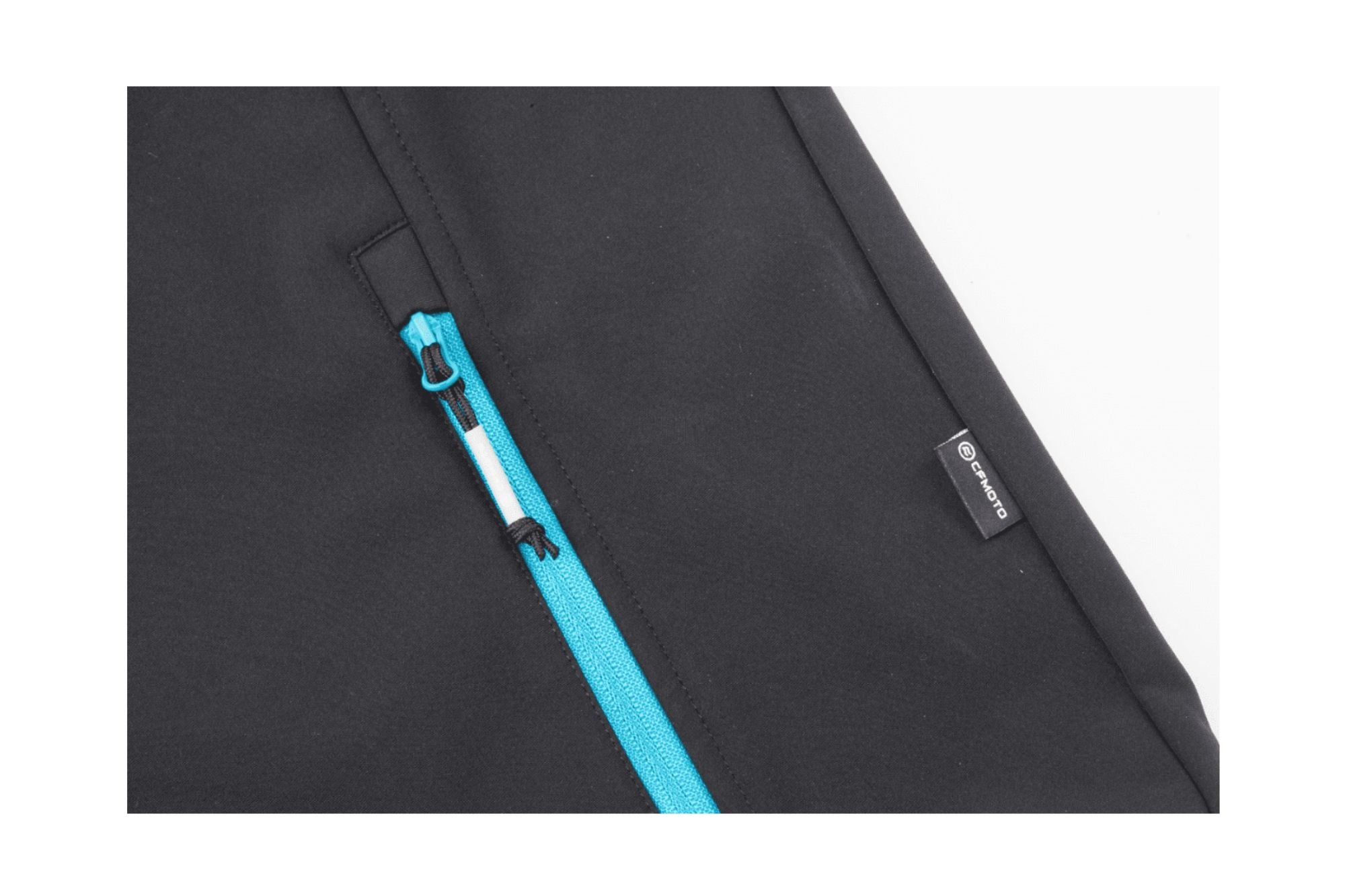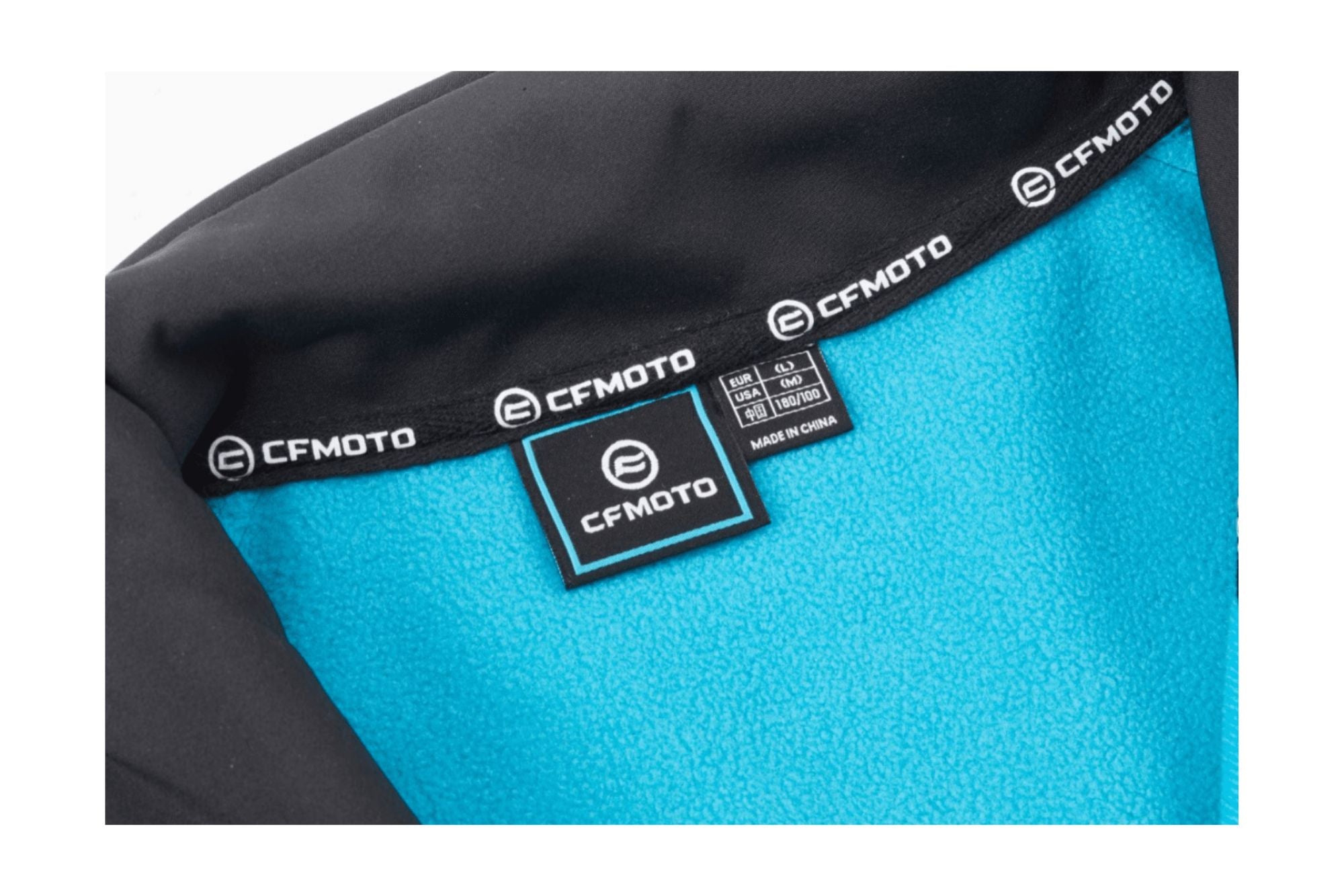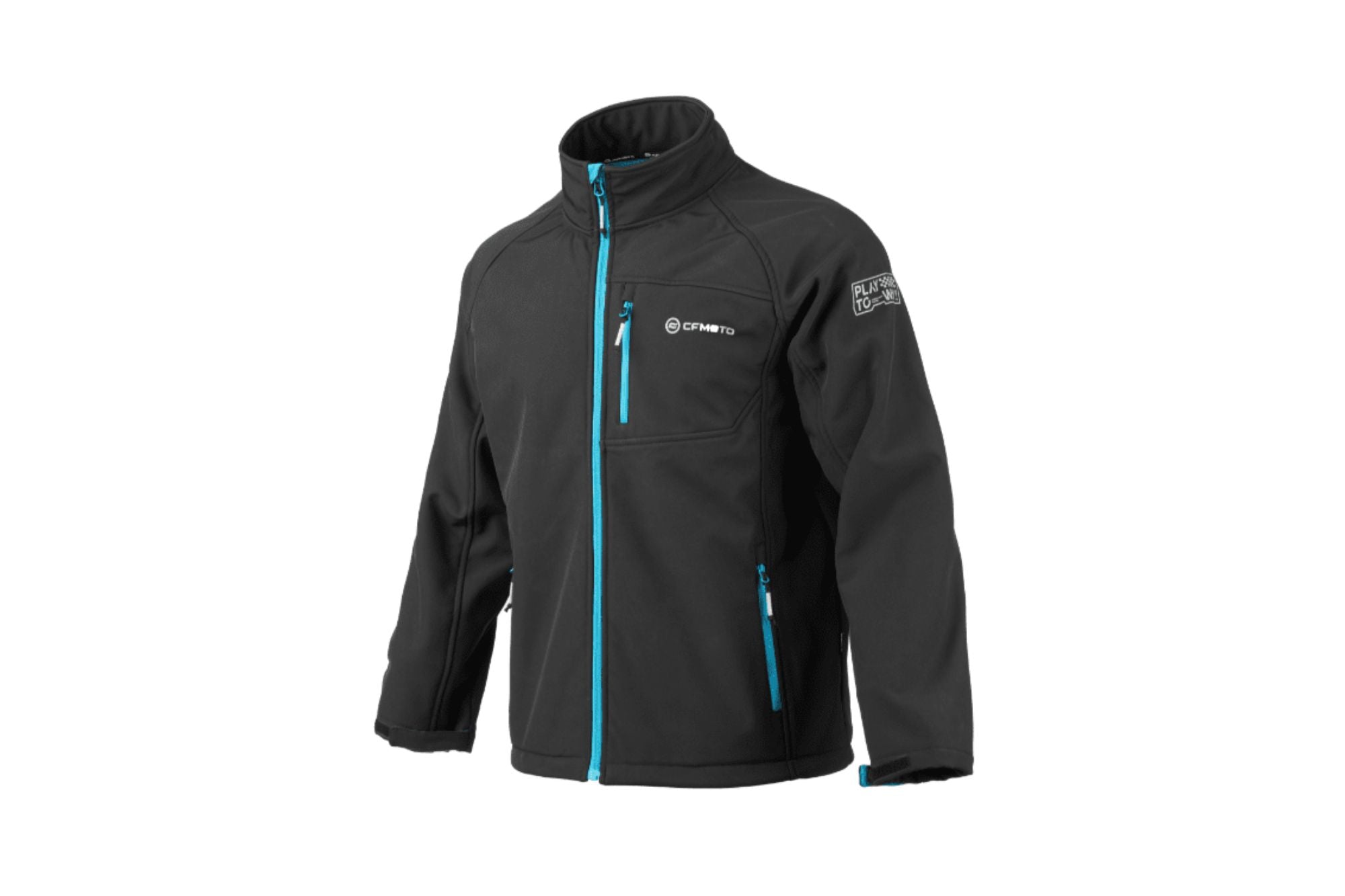 Pánská softshellová bunda CFMOTO v černém provedení s výraznou barvou zipů.
