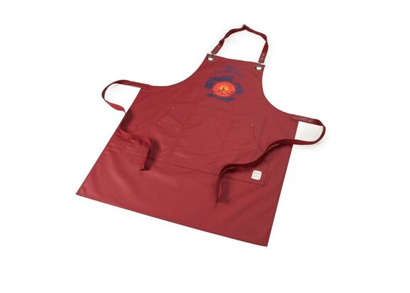 - Vnější strana bavlněného materiálu je opatřena vrstvou PU odpuzující špínu a vlhkost. Skvrny tak lze jednoduše vyčistit vlhkým hadříkem - Různé kovové prvky podtrhují svérázný vzhled - Spona na pásu okolo krku k nastavení délky - Pás okolo krku lze díky karabině kompletně odepnou ze zástěry. Díky tomu jej lze vyprat samostatně a obzvláště hygienicky - Zavazovací pásky v pasek - Velká nasazená přední kapsa rozdělená na 3 části - Vyrytý kovový emblém s retro kompasem - Vpředu velký potisk s motivem „T3 ohniště“ - Barevně ladící s retro grilovacími rukavicemi - Materiál: 100 % bavlna s vrstvou PU